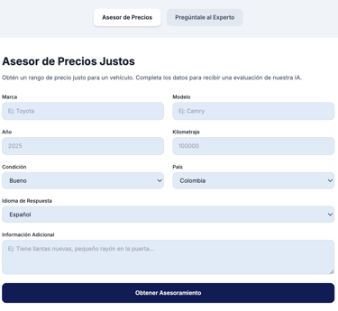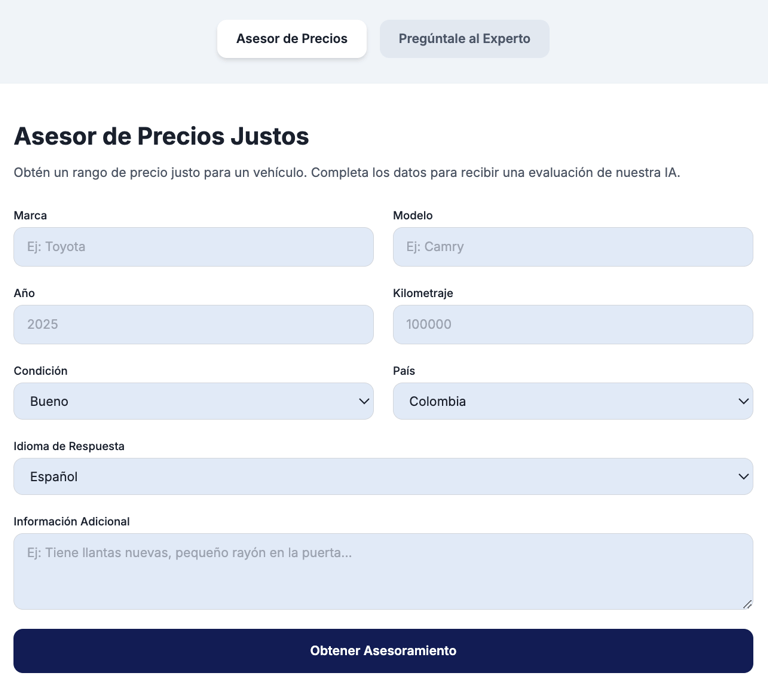 Accede a nuestra app con IA para obtener valoraciones de precios de vehículos y diagnósticos de problemas mecánicos comunes en segundos. Tu mecánico virtual, siempre en tu bolsillo.